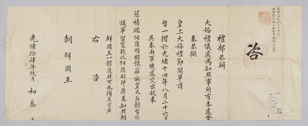 Keywords: 조선-청 외교문서(자문) 157.jpg 고종 25년 1888 9월 3 에 청국 예 에 조선국왕에게 보내 온 문 황상 혼 예절 단 開單 에 해 알았다고 확 해주는 내용 다 2016-07-18 http //www nl go kr/nl/search/SearchDetail nl category_code ct service KOLIS vdkvgwkey 1129983 colltype DAN_OLD place_code_info 172 place_name_info EB 94 94 EC A7 80 ED 84 B8 EC 97 B4 EB 9E 8C EC 8B A4 manage_code MA shape_code B refLoc null category srchFlag Y h_kwd E5 8F A4 E6 9C 9D51- EB 8B A428-224 lic_yn N mat_code RB 국립중앙도 조선국왕 청국예 other versions PD-Art Books from National Library of Korea Books from Korea 1888 in Relations of the Joseon Dynasty and the Qing Dynasty |