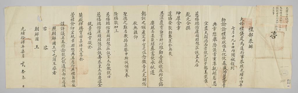 Keywords: 조선-청 외교문서(자문) 156.jpg 고종 25 1888 년 7월 23 에 청 예 에 황상 皇上 혼 大婚禮 후 황 후 皇太后 에게 호 徽號 를 상 加上 할 때에 행해야 할 전 典禮 를 자세히 논해 아뢰었다고 조선 국왕에게 알리는 문 다 2016-07-18 http //www nl go kr/nl/search/SearchDetail nl category_code ct service KOLIS vdkvgwkey 1129988 colltype DAN_OLD place_code_info 172 place_name_info EB 94 94 EC A7 80 ED 84 B8 EC 97 B4 EB 9E 8C EC 8B A4 manage_code MA shape_code B refLoc null category srchFlag Y h_kwd E5 8F A4 E6 9C 9D51- EB 8B A428-223 lic_yn N mat_code RB 국립중앙도 조선국왕 청국예 other versions PD-Art Books from National Library of Korea Books from Korea 1888 in Relations of the Joseon Dynasty and the Qing Dynasty |