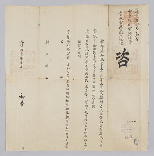 Keywords: 조선-청 외교문서(자문) 165.jpg 고종 22년 1885 2월 1 에 청국 예 에 조선국왕에게 보내 온 문 조선에 파견 재주 應浚 등 사신 행에게 65냥 포상하 다고 알리는 내용 다 2016-07-19 http //www nl go kr/nl/search/SearchDetail nl category_code ct service KOLIS vdkvgwkey 1130220 colltype DAN_OLD place_code_info 172 place_name_info EB 94 94 EC A7 80 ED 84 B8 EC 97 B4 EB 9E 8C EC 8B A4 manage_code MA shape_code B refLoc null category srchFlag Y h_kwd E5 8F A4 E6 9C 9D51- EB 8B A428-233 lic_yn N mat_code RB 국립중앙도 조선국왕 청국예 other versions PD-Art Books from National Library of Korea Books from Korea 1885 in Relations of the Joseon Dynasty and the Qing Dynasty |