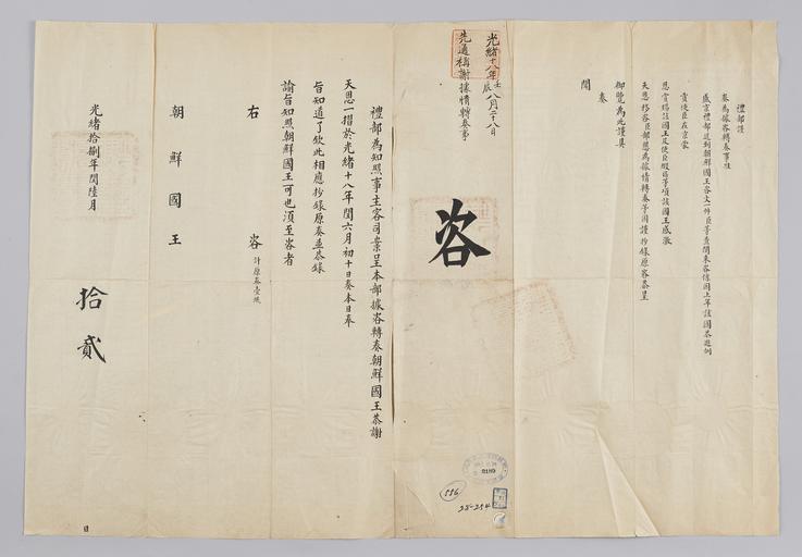 Keywords: 조선-청 외교문서(자문) 181.jpg 고종 29년 1892 6월 12 에 청국 예 에 조선국왕에게 보내 온 문 황 께 조선 진공 사신에게 포상 것에 해 조선국왕 올린 감사 자문 황 에게 아뢰었 알리는 내용 다 2016-07-19 http //www nl go kr/nl/search/SearchDetail nl category_code ct service KOLIS vdkvgwkey 1130280 colltype DAN_OLD place_code_info 172 place_name_info EB 94 94 EC A7 80 ED 84 B8 EC 97 B4 EB 9E 8C EC 8B A4 manage_code MA shape_code B refLoc null category srchFlag Y h_kwd E5 8F A4 E6 9C 9D51- EB 8B A428-254 lic_yn N mat_code RB 국립중앙도 조선국왕 청국예 other versions PD-Art Books from National Library of Korea Books from Korea 1892 in Relations of the Joseon Dynasty and the Qing Dynasty |