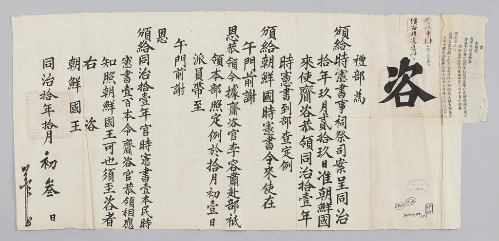Keywords: 조선-청 외교문서(자문) 199.jpg 고종 8년 1871 10월 3 에 청국 예 에 조선국왕에게 보내 온 문 조선에 파견 재자 용숙에게 헌력 時憲曆 반급 頒給 하 알리는 내용 다 2016-07-19 http //www nl go kr/nl/search/SearchDetail nl category_code ct service KOLIS vdkvgwkey 1130374 colltype DAN_OLD place_code_info 172 place_name_info EB 94 94 EC A7 80 ED 84 B8 EC 97 B4 EB 9E 8C EC 8B A4 manage_code MA shape_code B refLoc null category srchFlag Y h_kwd E5 8F A4 E6 9C 9D51- EB 8B A428-276 lic_yn N mat_code RB 국립중앙도 조선국왕 청국예 other versions PD-Art Books from National Library of Korea Books from Korea 1871 in Relations of the Joseon Dynasty and the Qing Dynasty |