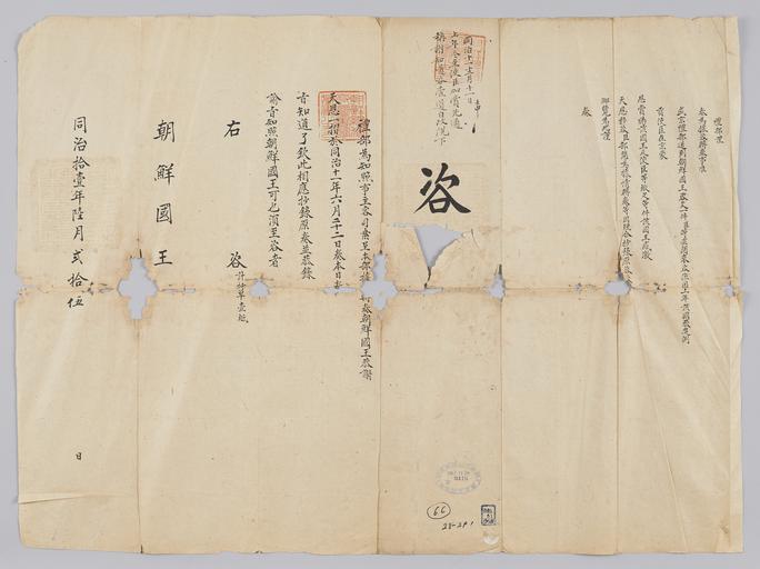 Keywords: 조선-청 외교문서(자문) 213.jpg 고종 9년 1872 6월 25 에 청국 예 에 조선국왕에게 보내 온 문 작년 동 사신에게 상 것에 해 조선국왕 올린 사 를 황 에게 올렸 알리는 내용 다 2016-07-19 http //www nl go kr/nl/search/SearchDetail nl category_code ct service KOLIS vdkvgwkey 1130376 colltype DAN_OLD place_code_info 172 place_name_info EB 94 94 EC A7 80 ED 84 B8 EC 97 B4 EB 9E 8C EC 8B A4 manage_code MA shape_code B refLoc null category srchFlag Y h_kwd E5 8F A4 E6 9C 9D51- EB 8B A428-291 lic_yn N mat_code RB 국립중앙도 조선국왕 청국예 other versions PD-Art Books from National Library of Korea Books from Korea 1872 in Relations of the Joseon Dynasty and the Qing Dynasty |