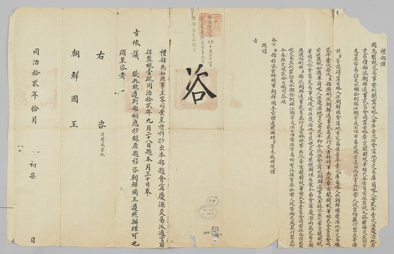 Keywords: 조선-청 외교문서(자문) 266.jpg 고종 10년 1873 10월 7 에 청국 예 에 조선국왕에게 보내 온 문 회녕·경원에 교역하는데 통 파견 다고 알리는 내용 다 2016-07-19 http //www nl go kr/nl/search/SearchDetail nl category_code ct service KOLIS vdkvgwkey 1130325 colltype DAN_OLD place_code_info 172 place_name_info EB 94 94 EC A7 80 ED 84 B8 EC 97 B4 EB 9E 8C EC 8B A4 manage_code MA shape_code B refLoc null category srchFlag Y h_kwd E5 8F A4 E6 9C 9D51- EB 8B A428-344 lic_yn N mat_code RB 국립중앙도 조선국왕 청국예 other versions PD-Art Books from National Library of Korea Books from Korea 1873 in Relations of the Joseon Dynasty and the Qing Dynasty |