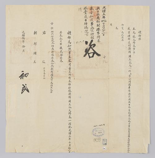 Keywords: 조선-청 외교문서(자문) 255.jpg 고종 16년 1879 10월 2 에 청국 예 에 조선국왕에게 보내 온 문 조선에 본과 항 開港 하는 문 를 협상하고 있는 사안에 해 황 에게 아뢰었 알리는 내용 다 2016-07-19 http //www nl go kr/nl/search/SearchDetail nl category_code ct service KOLIS vdkvgwkey 1130087 colltype DAN_OLD place_code_info 172 place_name_info EB 94 94 EC A7 80 ED 84 B8 EC 97 B4 EB 9E 8C EC 8B A4 manage_code MA shape_code B refLoc null category srchFlag Y h_kwd E5 8F A4 E6 9C 9D51- EB 8B A428-333 lic_yn N mat_code RB 국립중앙도 조선국왕 청국예 other versions PD-Art Books from National Library of Korea Books from Korea 1879 in Relations of the Joseon Dynasty and the Qing Dynasty |