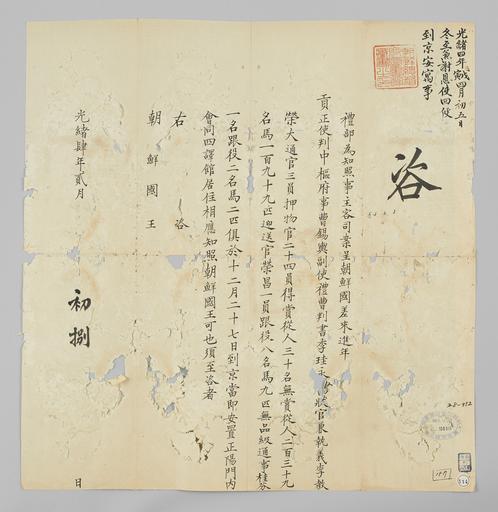Keywords: 조선-청 외교문서(자문) 274.jpg 고종 15년 1878 2월 8 에 청국 예 에 조선국왕에게 보내 온 문 조선에 진공 겸 사 사 보낸 정사 조 여 등 행 작년 12월 27 에 북경에 도착하여 회동 사역 에 머물고 있 알리는 내용 다 2016-07-19 http //www nl go kr/nl/search/SearchDetail nl category_code ct service KOLIS vdkvgwkey 43348197 colltype DAN_OLD place_code_info 172 place_name_info EB 94 94 EC A7 80 ED 84 B8 EC 97 B4 EB 9E 8C EC 8B A4 manage_code MA shape_code B refLoc null category srchFlag Y h_kwd E5 8F A4 E6 9C 9D51- EB 8B A428-352 lic_yn N mat_code RB 국립중앙도 청국 예 급 other versions PD-Art Books from National Library of Korea Books from Korea 1878 in Relations of the Joseon Dynasty and the Qing Dynasty |