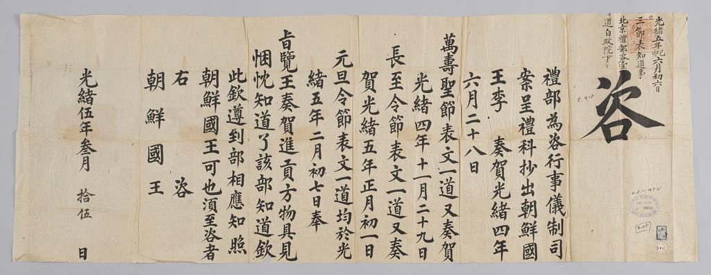 Keywords: 조선-청 외교문서(자문) 276.jpg 고종 16년 1879 3월 15 에 청국 예 에 조선국왕에게 보내 온 문 해 조선국왕 올린 만수성절 문 장 령절 문 원단령절 문 황 에게 아뢰었 알리는 내용 다 2016-07-19 http //www nl go kr/nl/search/SearchDetail nl category_code ct service KOLIS vdkvgwkey 1130099 colltype DAN_OLD place_code_info 172 place_name_info EB 94 94 EC A7 80 ED 84 B8 EC 97 B4 EB 9E 8C EC 8B A4 manage_code MA shape_code B refLoc null category srchFlag Y h_kwd E5 8F A4 E6 9C 9D51- EB 8B A428-354 lic_yn N mat_code RB 국립중앙도 조선국왕 청국예 other versions PD-Art Books from National Library of Korea Books from Korea 1879 in Relations of the Joseon Dynasty and the Qing Dynasty |