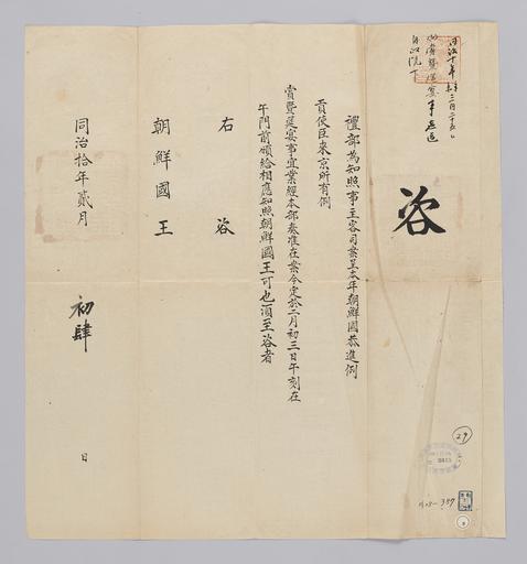 Keywords: 조선-청 외교문서(자문) 304.jpg 고종 8년 1871 2월 4 에 청국 예 에 조선국왕에게 보내 온 문 조선에 파견 사신들에게 포상하고 연회를 베 었다고 알리는 내용 다 2016-07-19 http //www nl go kr/nl/search/SearchDetail nl category_code ct service KOLIS vdkvgwkey 1130413 colltype DAN_OLD place_code_info 172 place_name_info EB 94 94 EC A7 80 ED 84 B8 EC 97 B4 EB 9E 8C EC 8B A4 manage_code MA shape_code B refLoc null category srchFlag Y h_kwd E5 8F A4 E6 9C 9D51- EB 8B A428-387 lic_yn N mat_code RB 국립중앙도 조선국왕 청국예 other versions PD-Art Books from National Library of Korea Books from Korea 1871 in Relations of the Joseon Dynasty and the Qing Dynasty |