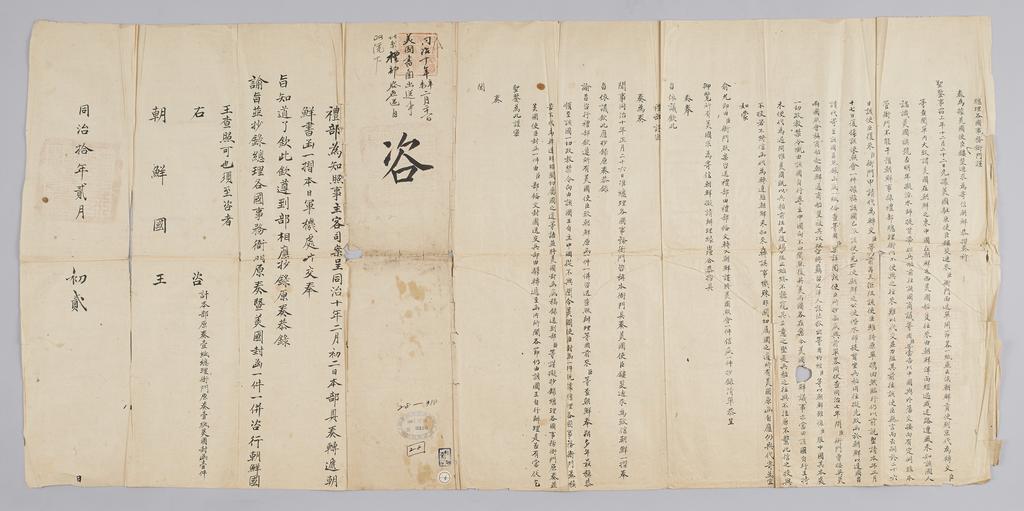 Keywords: 조선-청 외교문서(자문) 305.jpg 고종 8년 1871 2월 2 에 청국 예 에 조선국왕에게 보내 온 문 주청 駐淸 미국 美 사신鏤斐迪 Frederick Ferdinand Low 중국 통해 조선에 전달하려는 문 를 보낸다고 하는 것 그 문 에는 미국 배 조선 영해를 나니 화목하게 내자는 담고 있다고 알리는 내용 다 2016-07-19 http //www nl go kr/nl/search/SearchDetail nl category_code ct service KOLIS vdkvgwkey 1130414 colltype DAN_OLD place_code_info 172 place_name_info EB 94 94 EC A7 80 ED 84 B8 EC 97 B4 EB 9E 8C EC 8B A4 manage_code MA shape_code B refLoc null category srchFlag Y h_kwd E5 8F A4 E6 9C 9D51- EB 8B A428-388 lic_yn N mat_code RB 국립중앙도 조선국왕 청국예 other versions PD-Art Books from National Library of Korea Books from Korea 1871 in Relations of the Joseon Dynasty and the Qing Dynasty |