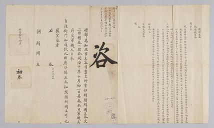 Keywords: 조선-청 외교문서(자문) 307.jpg 고종 8년 1871 10월 3 에 청국 예 에 조선국왕에게 보내 온 문 황해도 백령진에 류해 온 중국 9명과 영 英 ·포국 布 人 2명 큰 배 잘 돌려 보냈다는 조선국왕 자문 2건 받았다고 알리는 내용 다 2016-07-19 http //www nl go kr/nl/search/SearchDetail nl category_code ct service KOLIS vdkvgwkey 1130391 colltype DAN_OLD place_code_info 172 place_name_info EB 94 94 EC A7 80 ED 84 B8 EC 97 B4 EB 9E 8C EC 8B A4 manage_code MA shape_code B refLoc null category srchFlag Y h_kwd E5 8F A4 E6 9C 9D51- EB 8B A428-391 lic_yn N mat_code RB 국림중앙도 조선국왕 청국예 other versions PD-Art Books from National Library of Korea Books from Korea 1871 in Relations of the Joseon Dynasty and the Qing Dynasty |