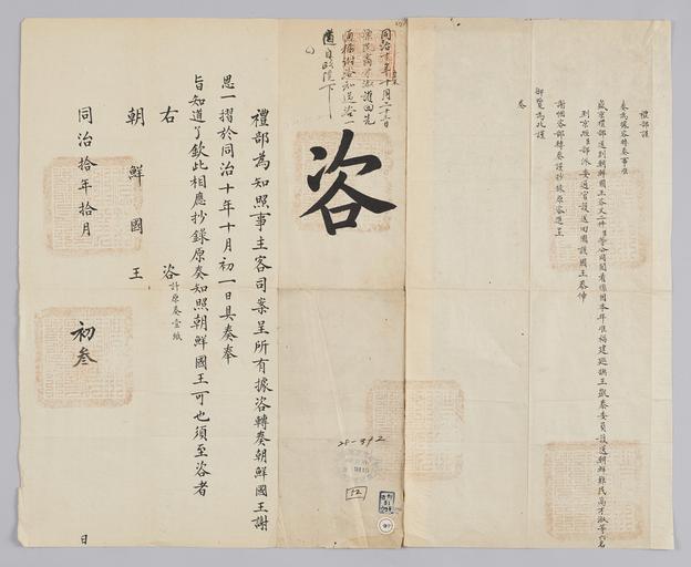 Keywords: 조선-청 외교문서(자문) 308.jpg 고종 8년 1871 10월 3 에 청국 예 에 조선국왕에게 보내 온 문 조선 민 고재숙 高才淑 등 6명 돌려보내 것에 해 조선국왕 보낸 사 를 황 에게 아뢰었다고 알리는 내용 다 2016-07-19 http //www nl go kr/nl/search/SearchDetail nl category_code ct service KOLIS vdkvgwkey 1130390 colltype DAN_OLD place_code_info 172 place_name_info EB 94 94 EC A7 80 ED 84 B8 EC 97 B4 EB 9E 8C EC 8B A4 manage_code MA shape_code B refLoc null category srchFlag Y h_kwd E5 8F A4 E6 9C 9D51- EB 8B A428-392 lic_yn N mat_code RB 국립중앙도 조선국왕 청국예 other versions PD-Art Books from National Library of Korea Books from Korea 1871 in Relations of the Joseon Dynasty and the Qing Dynasty |