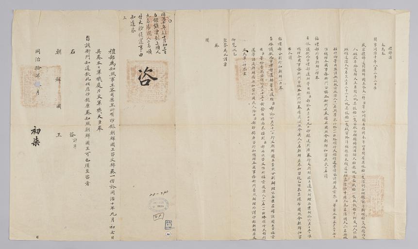 Keywords: 조선-청 외교문서(자문) 306.jpg 고종 8년 1871 9월 7 에 청국 예 에 조선국왕에게 보내 온 문 4월에 양선 異樣船 백령진 白翎鎭 앞바다에 왔 때 류해 온 중국 9명과 양국 洋 人 2명 큰 배 돌려보냈다는 조선 자문 받았다고 알리는 내용 다 2016-07-19 http //www nl go kr/nl/search/SearchDetail nl category_code ct service KOLIS vdkvgwkey 1130393 colltype DAN_OLD place_code_info 172 place_name_info EA B3 A0 EC A0 84 EC 9A B4 EC 98 81 EC 8B A4 286 EC B8 B5 29 manage_code MA shape_code B refLoc null category srchFlag Y h_kwd E5 8F A4 E6 9C 9D51- EB 8B A428-390 lic_yn N mat_code RB 국립중앙도 조선국왕 청국예 other versions PD-Art Books from National Library of Korea Books from Korea 1871 in Relations of the Joseon Dynasty and the Qing Dynasty |