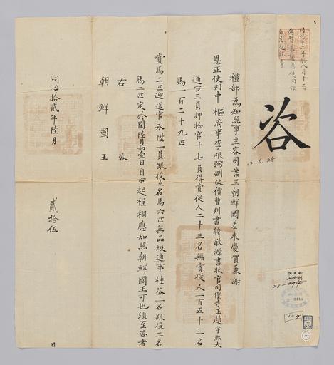 Keywords: 조선-청 외교문서(자문) 318.jpg 고종 10년 1873 6월 25 에 청국 예 에 조선국왕에게 보내 온 문 조선에 보낸 경하 겸 사 사 정사 근필 등 행 마치고 달 1 에 북경 다고 알리는 내용 다 2016-07-19 http //www nl go kr/nl/search/SearchDetail nl category_code ct service KOLIS vdkvgwkey 1130339 colltype DAN_OLD place_code_info 172 place_name_info EB 94 94 EC A7 80 ED 84 B8 EC 97 B4 EB 9E 8C EC 8B A4 manage_code MA shape_code B refLoc null category srchFlag Y h_kwd E5 8F A4 E6 9C 9D51- EB 8B A428-402 lic_yn N mat_code RB 국립중앙도 조선국왕 청국예 other versions PD-Art Books from National Library of Korea Books from Korea 1873 in Relations of the Joseon Dynasty and the Qing Dynasty |