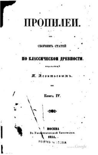 Keywords: Пропилеи (сборник).jpg ru Обложка сбо ника статей по классической д евности «П опилеи» 1851 http //www twirpx com/file/1707858/ author other versions Custom license marker 2016 01 13 PD-RusEmpire Magazines of the Russian Empire