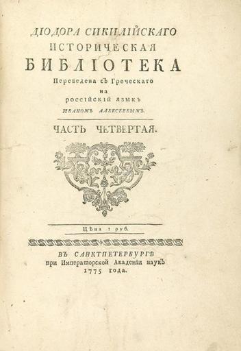| Keywords: Диодор Сикилийский. Историческая библиотека. Часть 4. (1775). — Тит. лист.jpg Диодо а Сикилийского Исто ическая библиотека Пе еведена с г еческого на оссийский язык Иваном Алексеевым Титульный лист 4 части 1775 https //ru bidspirit com/portal/ /catalog/auction/55278f92e4b0c2c600f47db2/ Диодо Сицилийский PD-RusEmpire Books by Diodorus Siculus Books from Russia 1775 Books published in Saint Petersburg Title pages uploaded by Steven Pavlov from various sources | ||||