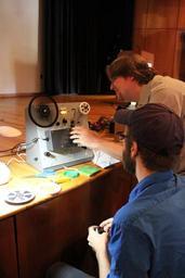 Keywords: Skip Elsheimer, right, loads an 8mm film. Home Movie Day 2015 in Raleigh, NC. Saturday, October 17, 2015, at the State Archives of North Carolina. Photo by Georgia Ponton. Skip Elsheimer, right, loads an 8mm film. Home Movie Day 2015 in Raleigh, NC. Saturday, October 17, 2015, at the State Archives of North Carolina. Photo by Georgia Ponton. |