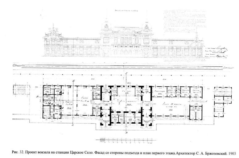 View Original:Проект_пассажирского_здания_на_станции_Царское_Село._Фасад_со_стороны_подъезда_и_план_первого_этажа._Архитектор_С._А._Бржозовский..jpg (2224x1470)