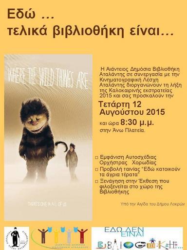 Keywords: Η Αιάντειος Δημόσια Βιβλιοθήκη Αταλάντης σε συνεργασία με την Κινηματογραφική Λέσχη Αταλάντης διοργανώνουν εορταστική βραδιά για τη λήξη της Καλοκαιρινής Εκστρατείας 2015! λέσχη βιβλιοθήκη αταλάντησ αιάντειοσ καλοκαιρινήεκστρατεία2015 αδβαταλάντησ κινηματογραφική |