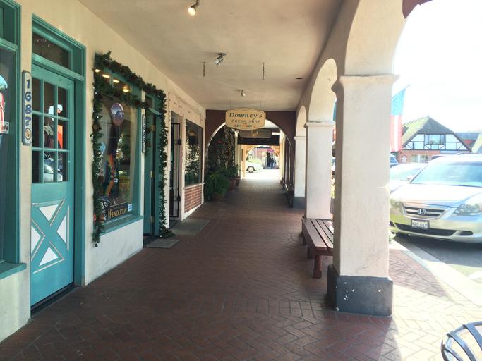 Keywords: sidewalk smallbusiness signage sign localbusiness economicdevelopment coveredsidewalk coveredwalkway paseo pedestrian enclosure walkability solvang bench streetfurniture