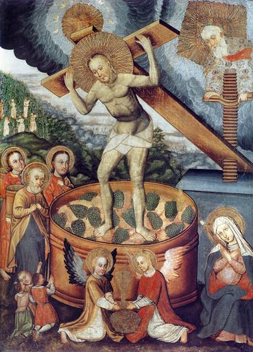 Christ in the Winefat. Late 17th c. Kyivshchyna. Tempera, gold-tinted silvering, engraving on gesso-grounded three-piece lime-wood panel.