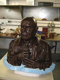 Keywords: A rubber mould taken from the clay original was used to cast this hollow copy of dark brown foundry wax. This wax copy will be used to make the plaster mould for the final bronze casting. A rubber mould taken from the clay original was used to cast this hollow copy of dark brown foundry wax. This wax copy will be used to make the plaster mould for the final bronze casting. |