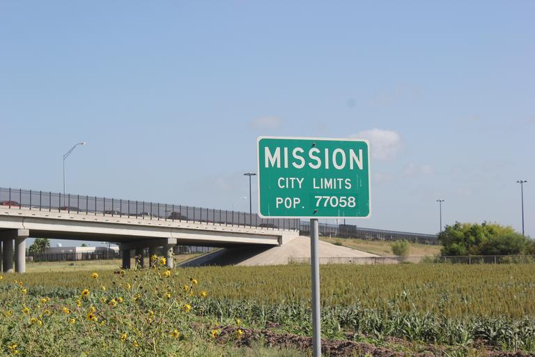 Keywords: border mission texas sign outdoor text signboard street sign Mission Texas city limits sign on the Rio Grande border Mission Texas city limits sign on the Rio Grande border