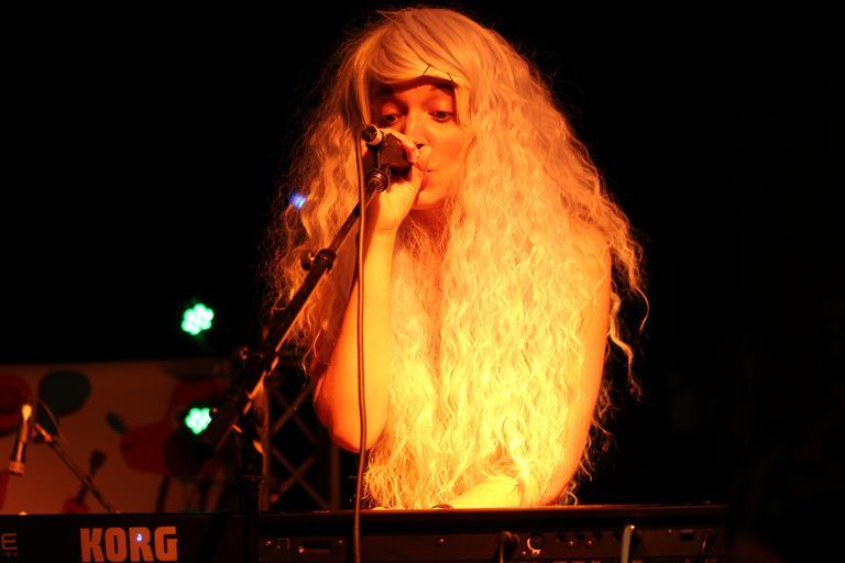 Keywords: pdx pop now 2015 summer outdoormusic outdoor concert stage sunlight tracks bridge drummer singer guitarist coco columbia jazz electronic rock weird spotlight Coco Columbia Coco Columbia