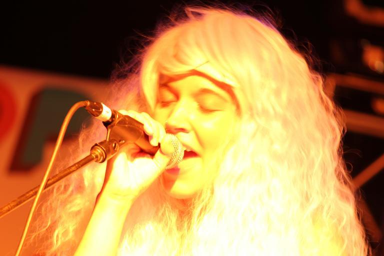 Keywords: pdx pop now 2015 summer outdoormusic outdoor concert stage sunlight tracks bridge drummer singer guitarist coco columbia jazz electronic rock weird spotlight black background bright Coco Columbia Coco Columbia