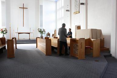Keywords: Right hand side of Chancel, St Matthew's Anglican Church, Masterton, with Sanctuary, Cross and Altar at the back. stmatthewsanglicanchurchmasterton