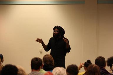 Keywords: Award-winning author Jason Reynolds returned to Kalamazoo on Wednesday, April 13, 2016, for a Meet the Author event at Central Library. Jason recently received the prestigious Walter Dean Myers Award for Outstanding Children’s Literature, and the American Library Association’s 2016 Coretta Scott King Honor Award for outstanding African American authors. Photo by Farrell Howe. www.kpl.gov Award-winning author Jason Reynolds returned to Kalamazoo on Wednesday, April 13, 2016, for a Meet the Author event at Central Library. Jason recently received the prestigious Walter Dean Myers Award for Outstanding Children’s Literature, and the American Library Association’s 2016 Coretta Scott King Honor Award for outstanding African American authors. Photo by Farrell Howe. www.kpl.gov