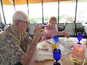 Keywords: Dave and Rosalie Deci having Christmas lunch at Pietros on the River