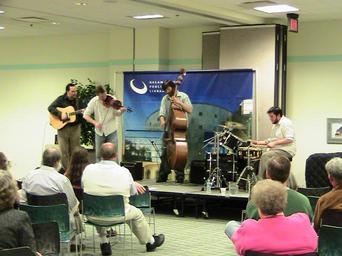 Keywords: kalamazoo library live concert liveconcert folk bluegrass jazz celtic indie State champion bluegrass fiddler Brad Phillips, national award-winning jazz percussionist Mike Shimmin, national champion soloist jazz bassist Andrew Kratzat, and title-defying-creative-mastermind-insertÂ-adjective-here guitarist Jesse Lee Mason share an active interest in jazz. Millish performed at Kalamazoo Public Library on May 13, 2009, as part of the library's Live Music @ KPL series. www.kpl.gov/music/ State champion bluegrass fiddler Brad Phillips, national award-winning jazz percussionist Mike Shimmin, national champion soloist jazz bassist Andrew Kratzat, and title-defying-creative-mastermind-insertÂ-adjective-here guitarist Jesse Lee Mason share an active interest in jazz. Millish performed at Kalamazoo Public Library on May 13, 2009, as part of the library's Live Music @ KPL series. www.kpl.gov/music/ |