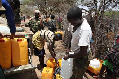 | Keywords: outdoor Burundian and SNA forces collect water in the town of Ragaele, Somalia, on October 2, two days after having liberated the town from al Shabab militants. AMISOM Photo / Fanah Mohamed Burundian and SNA forces collect water in the town of Ragaele, Somalia, on October 2, two days after having liberated the town from al Shabab militants. AMISOM Photo / Fanah Mohamed |