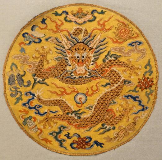 Keywords: Imperial insignia roundel for emperor's young son, 1 of 2, China, Qing dynasty, late 18th to early 19th century, silk, metal-wrapped silk - Textile Museum, George Washington University - DSC09548.JPG en Exhibit in the Textile Museum George Washington University Washington DC USA Photography was permitted in the museum without restriction This work is old enough so that it is in the public domain 2015-03-26 15 18 50 own Daderot other versions PD-old-70 cc-zero Textiles of China in the Textile Museum George Washington University Clothing of the Qing Dynasty Imperial clothing of China |