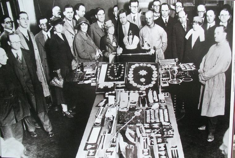 Keywords: Imperial regalia of Russia - BW photo 3.jpg Члены пе вой неофициальной Комиссии по асследованию в России осмат ивают ко онные ук ашения Романовых показанные им с аз ешения властей в оскве в нояб е 1926 г http //fotki yandex ru/users/lapteva-vic/album/202419/ p 3 1926 anonymous PD-Russia-2008 Russian Crown Jewels Empire Files uploaded by Shakko from various sources Great Imperial Crown Small Imperial crown of Russia Imperial orb of Russia Demolished imperial crowns of Russia Coronation Collar of the Order of St Andrew Imperial sceptre of Russia