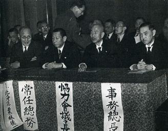 Keywords: Imperial Rule Assistance Association Cadre.JPG Imperial Rule Assistance Association's Cadre 大政翼賛会の幹部 Japanese book Showa History Vol 9 Battlefront and Home front published by Mainichi Newspapers Company 毎日新聞社 昭和史第9巻 戦線と銃後 より December 1940 1940年12 author Notes This file was scanned and edited by the uploader Abasaa ファイルはあばさーによりスキャンおよび編集されました PD-Japan-oldphoto Imperial Rule Assistance Association 1940 in Japan Nobumasa Suetsugu |