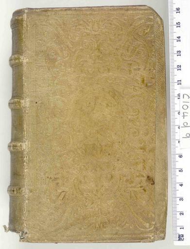 Keywords: In Erotemata dialectic ...Philip. Melanchthonis - Upper cover (c104d9).jpg Style Armorial Panel design; Caption Upper cover; Colour White / cream; Edge Unspecified exhibition history Decorative Technique Tooled in blind Panel stamp in blind; Cover Material Pigskin alum tawed Wooden boards Stamp features the coat of arms of Wittenberg 6 raised double bands top and tail band incorporates end bands Macchi states; bound during the last quarter of the 16th century in Tübingen by a Samuel Streler successor The panel stamp appears in Tübingen in several variants Ilse Schunke considers a variant the work of Samuel Streler whose name was recorded at Tübingen university in 1550 and who worked for Duke Christoph His activity is certified until 1577 but his workshop was active until 1618 Similar panel-stamp bindings are kept in 1 Berlin National Library A Schmidt Bucheinbände aus dem 14 -19 Jahrhundert pl XLVIII p 23 fig 74 on Handlungen Des Allgemeinen Concilumbs Wolches gehalten worden vber dem Span Tübingen Georg Gruppenbach 1582; Idem p 24 pl XLIX fig 76 on Hieronymi Cardani Mediolanensis medici de vtilitate ex adversis capienda libri III Basileae per Henricvm Petri 1561; 2 München National Library on Michael Maestlin Ephemerides novae Tübingen 1580 shelfmark 4° Eph astr 67 F Geldner Bucheinbände aus elf Jahrhunderten pl LXVI fig 92 ; 3 Rome Biblioteca Angelica on Martin Crusius Civitas coelestis seu Catecheticae conciones Tubingae apud Georgium Gruppenbachium 1587 shelfmark o 4 33 Ludwig III coat-of-arm Biblioteca Angelica Roma Legature di pregio p 48 n 22 ; 4 Schweinfurt Municipal Library M Hahn Schweinfurts Drucker Buchbinder und Buchhändler col 643 pl 22 For further bibliography see A von Arnim Einbandkunst n 67 on Abraham Buchholzer Chronologia Görlitz A Fritsch 1584; Collegio Borromeo Pavia Legature rinascimentali e barocche p XXXII n 58 on Cicero M Tullius Epistolarum ad familiares libri XVI apud Petrum Santeandrum 1580; F Geldner Pfalzgrav Philipp Ludwig von Neuburg 1574-1614 pl 8; E Ph Goldschmidt Gothic and Renaissance bookbindings n 254 on Valerius Maximus Antwerp Plantin 1574; E Kyriss Katalog historischer Einbände n 23 with reproduction; K Haebler Rollen- und Plattenstempel II p 90 panel-stamps III and V; I Schunke Studien zum Bilderschmuck p 72 Samuel Streler Another version produced in Lauingen by Hans Wagner in 1582 is recorded Antiquariat Konrad Meuschel Bad Honnef am Rhein Seltene Bücher p 16-17 n 20 on Cicero De officis De senectute De amicitia Paradoxa Somniun Scipionis Basel ex officina Herwagiana 1584; L Gruel Manuel historique et bibliographique 1905 p 172-173; K Haebler Rollen- und Plattenstempel H W Hans Wagner Lauingen p 482; A Schmidt Bucheinbände aus dem 14 -19 Jahrhundert p 24 pl XLIX fig 77 on Educationis puerilis lingvae Latinae pars prima Argentorati Josias Rihelius 1583 p 24 pl XLIX fig 78 on Strigilis grammatica Argentorati 1585 M von Arnim Einbände n 46 on Martin Luther Ein einfeltige weise zu beten für einen guten Freund Leipzig Valentin Baptist 1551 informs about a similar panel-stamp to be seen on a cover binding bound in Saxony object history Text 1579; Neustadt; Unspecified object type Cc-zero place of creation Binding Germany place of discovery Unspecified British Library image http //www bl uk/catalogues/bookbindings/LargeImage aspx RecordId 020-000004508 ImageId ImageId 41859 Copyright BL In Erotemata dialectic Philip Melanchthonis Uploaded with GWToolset In Erotemata dialectic Philip Melanchthonis - Upper cover c104d9 http //www webarchive org uk/bldatasets/bindings/6422_4 jpg Bookbinding 16th-century bookbinding British Library Bookbindings |