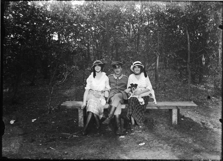 | Keywords: bergen bonda wo1 ww1 great war greatwar eerste wereldoorlog eerstewereldoorlog blackandwhite monochrome outdoor black and white Bankje in het bos, met daarop een Duitse militair geflankeerd door twee vrouwen. De vrouw rechts heeft een hond op schoot. Datum: 1916 Catalogusnummer: FO1400139 Bankje in het bos, met daarop een Duitse militair geflankeerd door twee vrouwen. De vrouw rechts heeft een hond op schoot. Datum: 1916 Catalogusnummer: FO1400139 | ||||