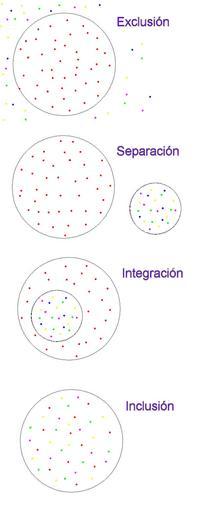 Keywords: Inclusion diag es.jpg Diagrama que ilustra las diferencias entre exclusión separación integración e inclusión en el contexto delos sistemas educativos La imágen fue publicada en wikipedia en alemán http //de wikipedia org/wiki/Inklusive_Pädagogik bajo licencia de dominio público Los subtítulos fueron traducidos al castellano por mi Marjorie Marcel 2006-09-08 own assumed Marjorie Marcel Pedagogy |