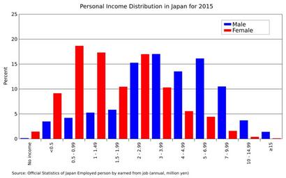 Keywords: Income distribution in Japan by sex.svg translate yes en Income distribution in Japan by sex in 2015 Japan has one of the greatest gender gaps in the world Data source Ministry of Internal Affairs and Communications 2016-05-26 own Delphi234 other versions current annually cc-zero Income distribution Economy of Japan Gender gap |