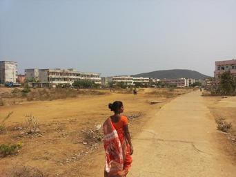 Keywords: india woman walking living rural female countryside dusty road bare land lady outdoor