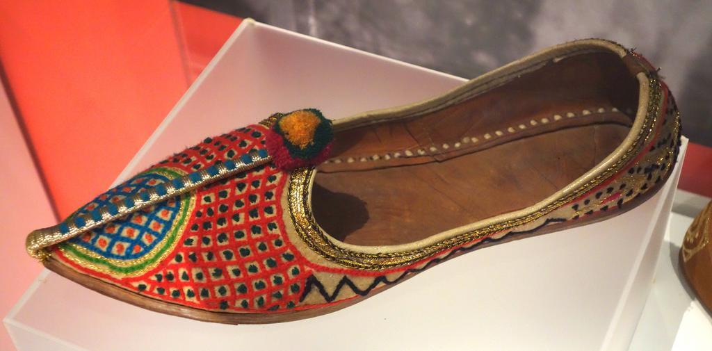 Keywords: Indian jutti, 1940-1998 - Bata Shoe Museum - DSC00435.JPG en Exhibit in the Bata Shoe Museum Toronto Ontario Canada The museum permitted photography without restriction 2013-07-04 11 09 03 own Daderot cc-zero Jutti in the Bata Shoe Museum Uploaded with UploadWizard Footwear of India |
