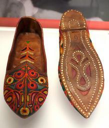Keywords: Indian juttis, late 20th century, Punjab - Bata Shoe Museum - DSC00432.JPG en Exhibit in the Bata Shoe Museum Toronto Ontario Canada The museum permitted photography without restriction 2013-07-04 11 08 33 own Daderot cc-zero Jutti in the Bata Shoe Museum Uploaded with UploadWizard Footwear of India |