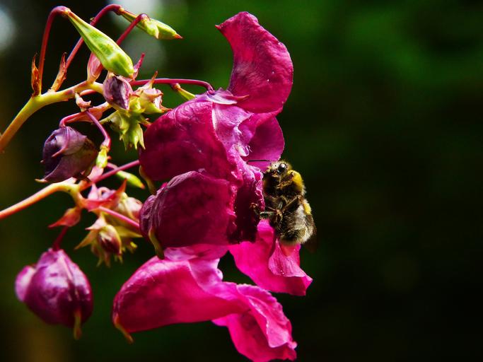 Keywords: indian springkraut himalayan balsam hummel insect annual wild flower red spring herb pink blossom bloom close