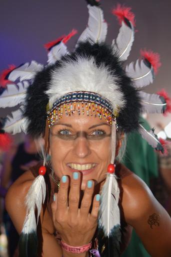 Keywords: indian squaw people woman dress up clothing feathers headgear