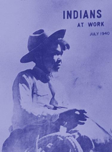 Keywords: Indians at work magazine july 1940 navajo lasso native americans cowboy.jpg US Department of the Interior sub-agencies the US Indian Service and also the Office of Indian Affairs the latter now called the Bureau of Indian Affairs Indians at Work attempted to highlight some of the more positive aspects of reservation life while also providing WPA style gainful employment for a team of government photographers including Gordon Sommers who later provided photos for the <i>Los Angeles Times</i> Other well-known New Deal era government photographers mostly working under authority of the Department of Agriculture of the Department of the Interior or of the Works Progress Administration included Ansel Adams Walker Evans Minor White Gordon Parks Ben Shahn Dorothea Lange and Arthur Rothstein This July 1940 cover image shows a close-up of a young male Navajo horse-rider with a lasso and lariat coil of ranch-rope at the ready US DOI now-defunct sub-agency Office of Indian Affairs US DOI Office of Indian Affairs staff 1940 PD-USGov-Interior PD-USGov Native American culture Historical photographs of Navajo people 1940 magazines 1940 in the United States New Deal Department of the Interior Office of Indian Affairs |
