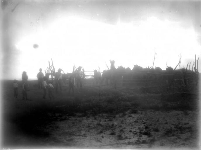 | Keywords: Indians threshing wheat at the pueblo town of Cibolleta, New Mexico, ca.1900 (CHS-3916).jpg en <br> Indians threshing wheat at the pueblo town of Cibolleta New Mexico ca 1900 Photograph of a group of Indians threshing wheat at the pueblo town of Cibolleta New Mexico ca 1900 Three men with pitchforks move the wheat or straw around near a corral built of a rough wood post and rail fence About ten horses and a man on horseback stand in the corral Four children a woman and another man look on The scene stands out in silhouette against a bright evening or morning sky Call number CHS-3916 Photographer James George Wharton Filename CHS-3916 Coverage date circa 1900 Part of collection California Historical Society Collection 1860-1960 Type images Part of subcollection Title Insurance and Trust and C C Pierce Photography Collection 1860-1960 Repository name USC Libraries Special Collections Accession number 3916 Archival file chs_Volume96/CHS-3916 tiff Geographic subject city or populated place Cibolleta Repository address Doheny Memorial Library Los Angeles CA 90089-0189 Geographic subject country USA Format aacr2 1 photograph transparency b w ; 21 x 26 cm Rights Digitally reproduced by the USC Digital Library; From the California Historical Society Collection at the University of Southern California Subject adlf tribal areas Repository email specol usc edu Contributing entity California Historical Society Date created circa 1900 Publisher of the digital version University of Southern California Libraries Format aat transparencies; photographs Geographic subject state New Mexico Legacy record ID chs-m16457 Access conditions Send requests to address or e-mail given Phone 213 821-2366; fax 213 740-2343 Subject lcsh Indians of North America; Pueblo Indians Subject Pueblo Indians; Indians -- Pueblo -- General; Indian Farms; Pueblo Indians circa 1900 date created George Wharton James 1858 1923 http //digitallibrary usc edu/cdm/ref/collection/p15799coll65/id/16396 PD-old-70-1923 Images from USC Digital Library uploaded by Fæ Photographs by George Wharton James California Historical Society Collection 1860-1960 |