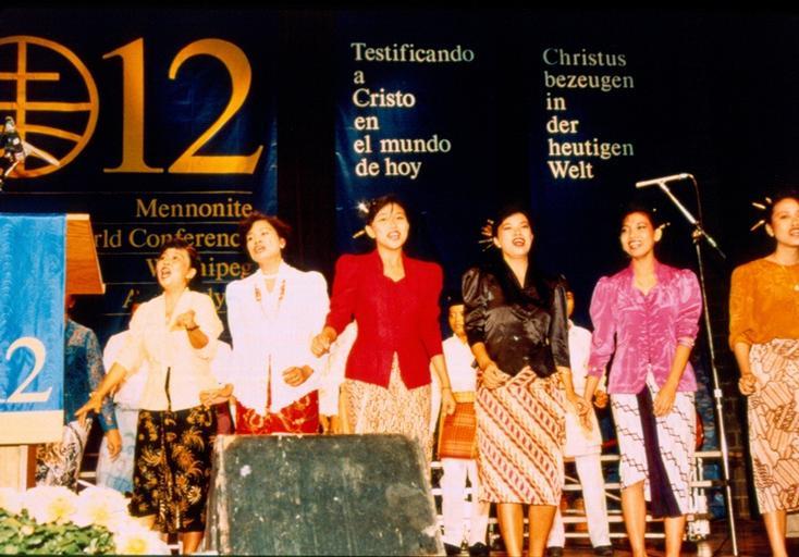 Keywords: choir indonesian choir indonesianchoir mennonite world conference winnipeg manitoba canada mennoniteworldconferencewinnipegmanitobacanada people groupshot Caption: The rich and colorful attire of the Indonesian Choir was a drawing card. Citation: Mennonite World Conference. Twelfth Mennonite World Conference, 1990, Winnipeg, Canada. Slides by T. Klassen; Script by John Dyck. X-9 Box 52 Folder 4 Slide 68. Mennonite Church USA Archives - Goshen. Goshen, Indiana. Caption: The rich and colorful attire of the Indonesian Choir was a drawing card. Citation: Mennonite World Conference. Twelfth Mennonite World Conference, 1990, Winnipeg, Canada. Slides by T. Klassen; Script by John Dyck. X-9 Box 52 Folder 4 Slide 68. Mennonite Church USA Archives - Goshen. Goshen, Indiana. |