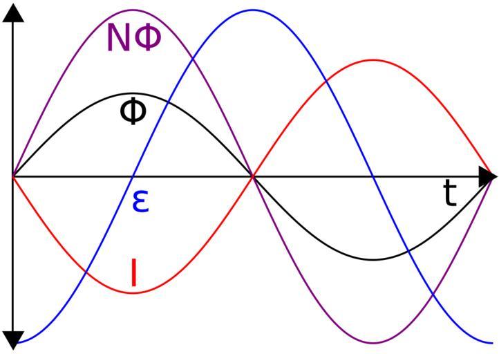 Keywords: Induction graph.svg en Graph of current which induces a flux and flux linkage which induces an emf to illustrate Faraday's and Lenz's Laws Own Sjlegg 2009-05-01 Magnetism plots