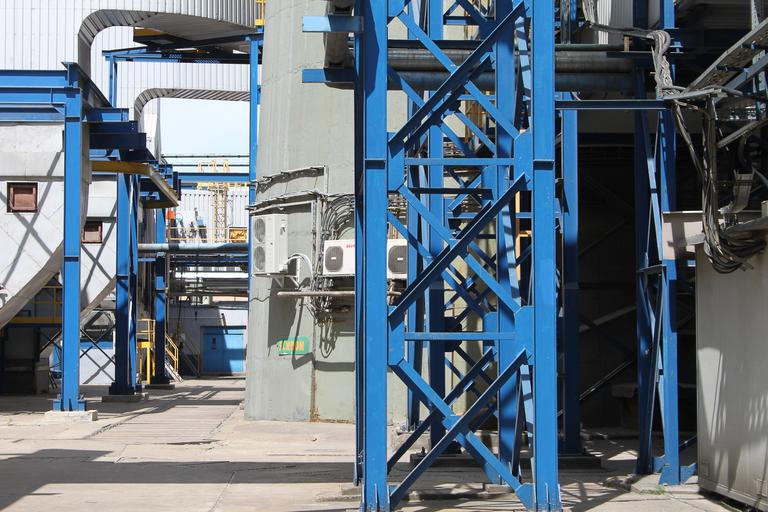 Keywords: industrial factory blue building combined heat and power plant metal the design of the