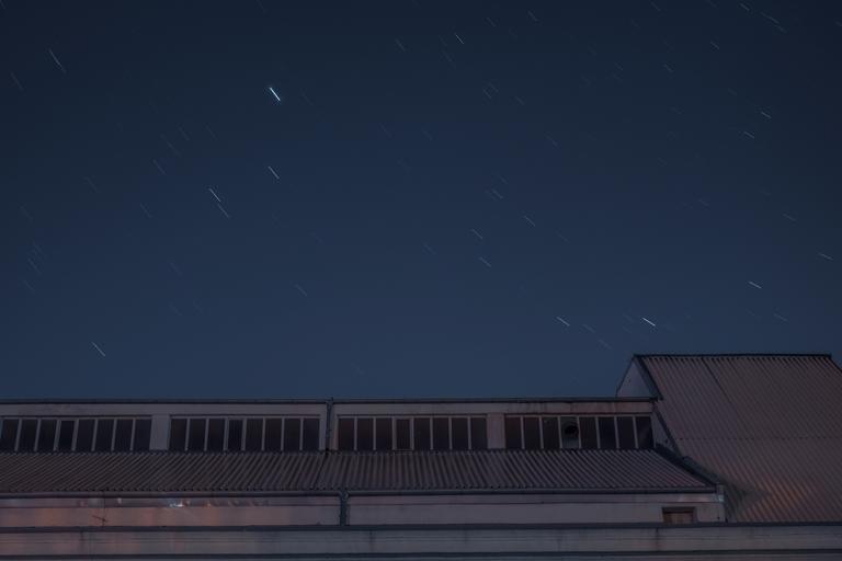 Keywords: industrial warehouse roof sky stars night evening architecture